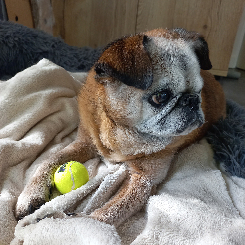 Onze lieve ouwe Boris is vandaag 15 jaar oud geworden. Wat een leeftijd hè voor zo’n hondje.