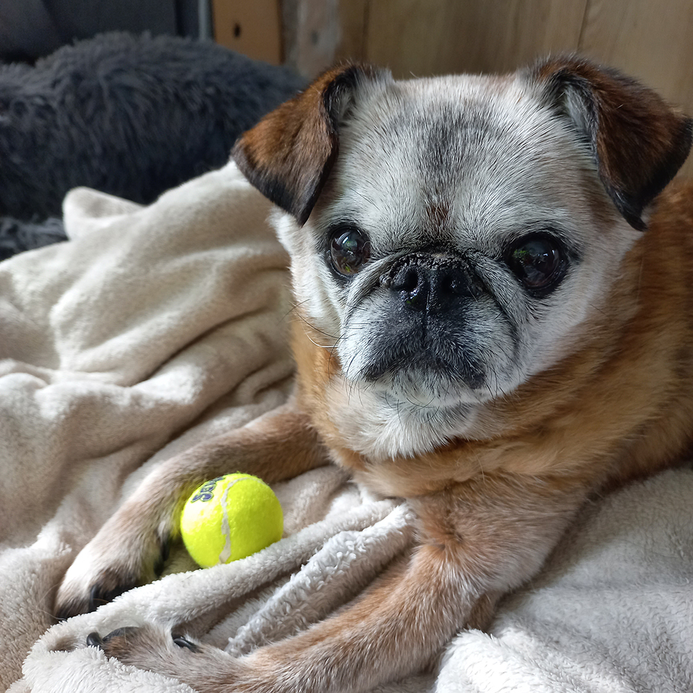Onze lieve ouwe Boris is vandaag 15 jaar oud geworden. Wat een leeftijd hè voor zo’n hondje. Vanmiddag kreeg hij een lekker botje en natuurlijk een netje met kleine balletjes. Die hond leeft voor balletjes. Hij is niet meer de fitste maar het gaat best goed nog. Hij is wel nagenoeg blind en stokdoof. Maar blijkbaar heeft hij daar zijn weg in gevonden. Hij slaapt veel, eet wanneer het hem uitkomt en is elke ochtend weer vrolijk als hij uit de bench komt. Ik hoop dat we nog lang van hem mogen houden.