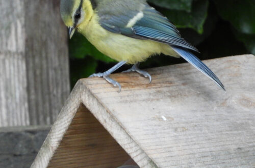 Op een paal langs de weg zag ik opeens iets bijzonders zitten. Natuurlijk meteen gestopt, camera gepakt – maar met Banjer wiebelend in de fietsmand achterop was dat nog best een uitdaging.