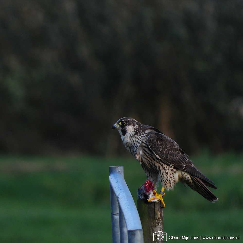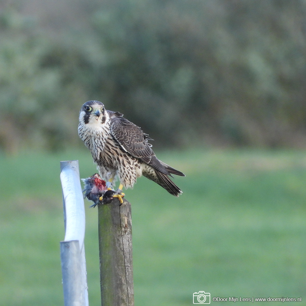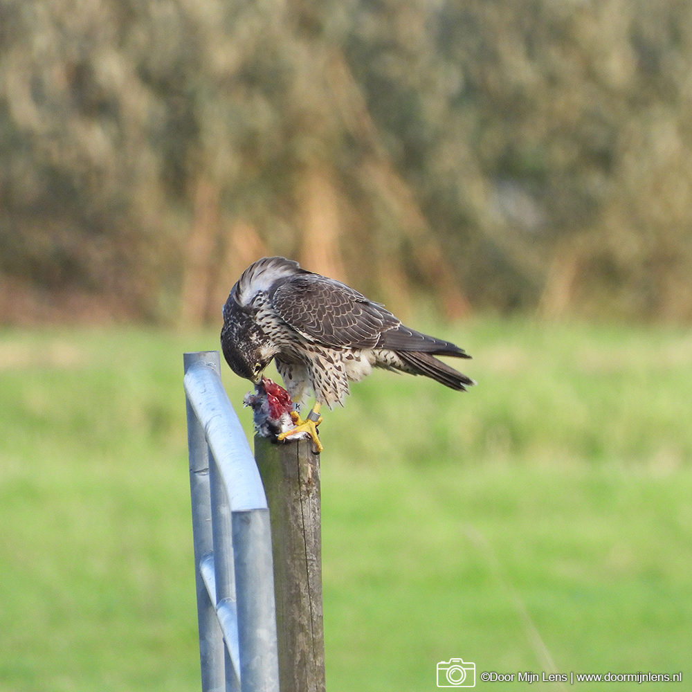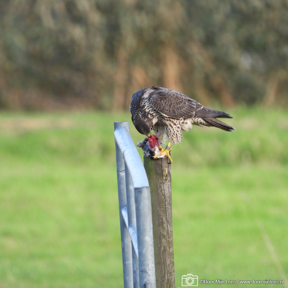 Toch is het gelukt: ik heb een prachtige slechtvalk met zijn prooi vast kunnen leggen! Wat een indrukwekkend gezicht, zo’n machtige roofvogel die rustig blijft zitten terwijl ik voorzichtig mijn foto’s maakte.