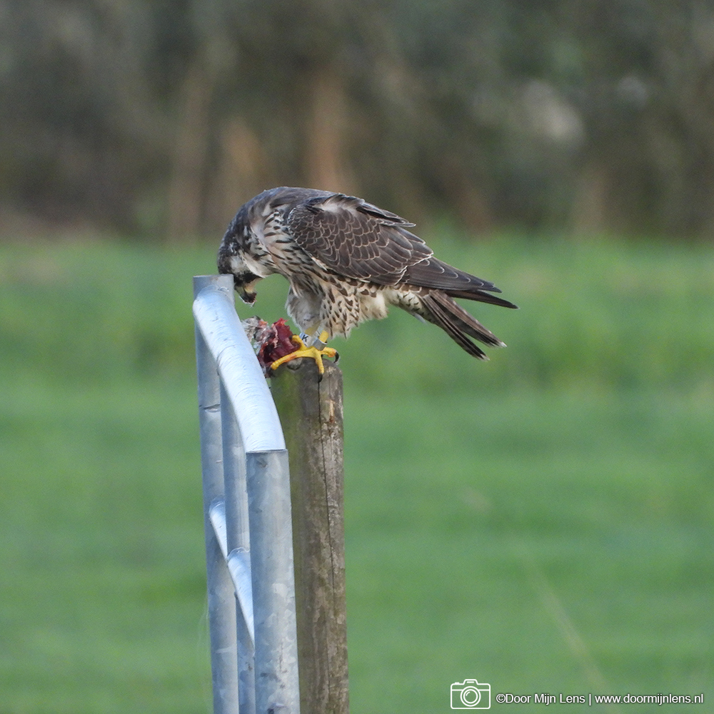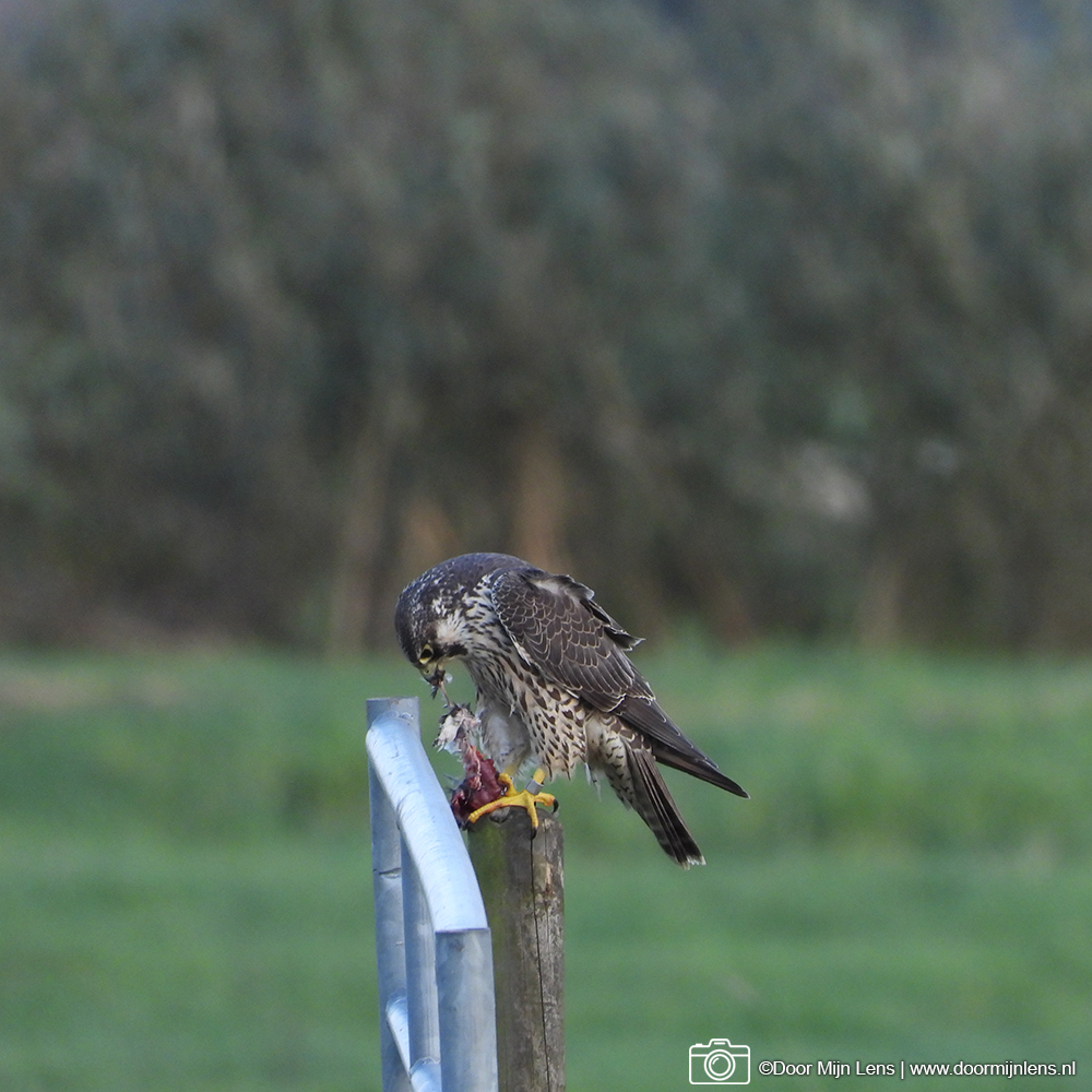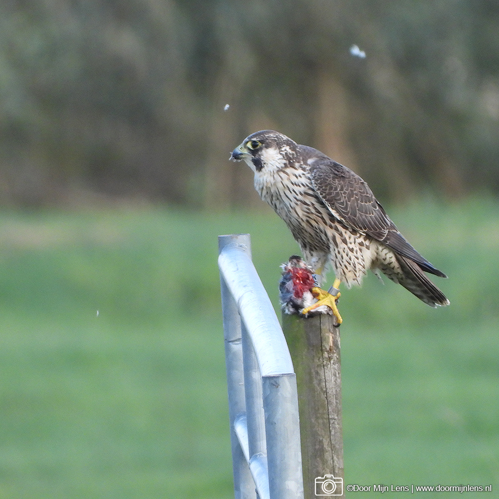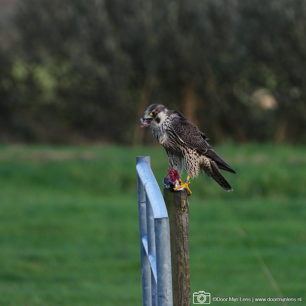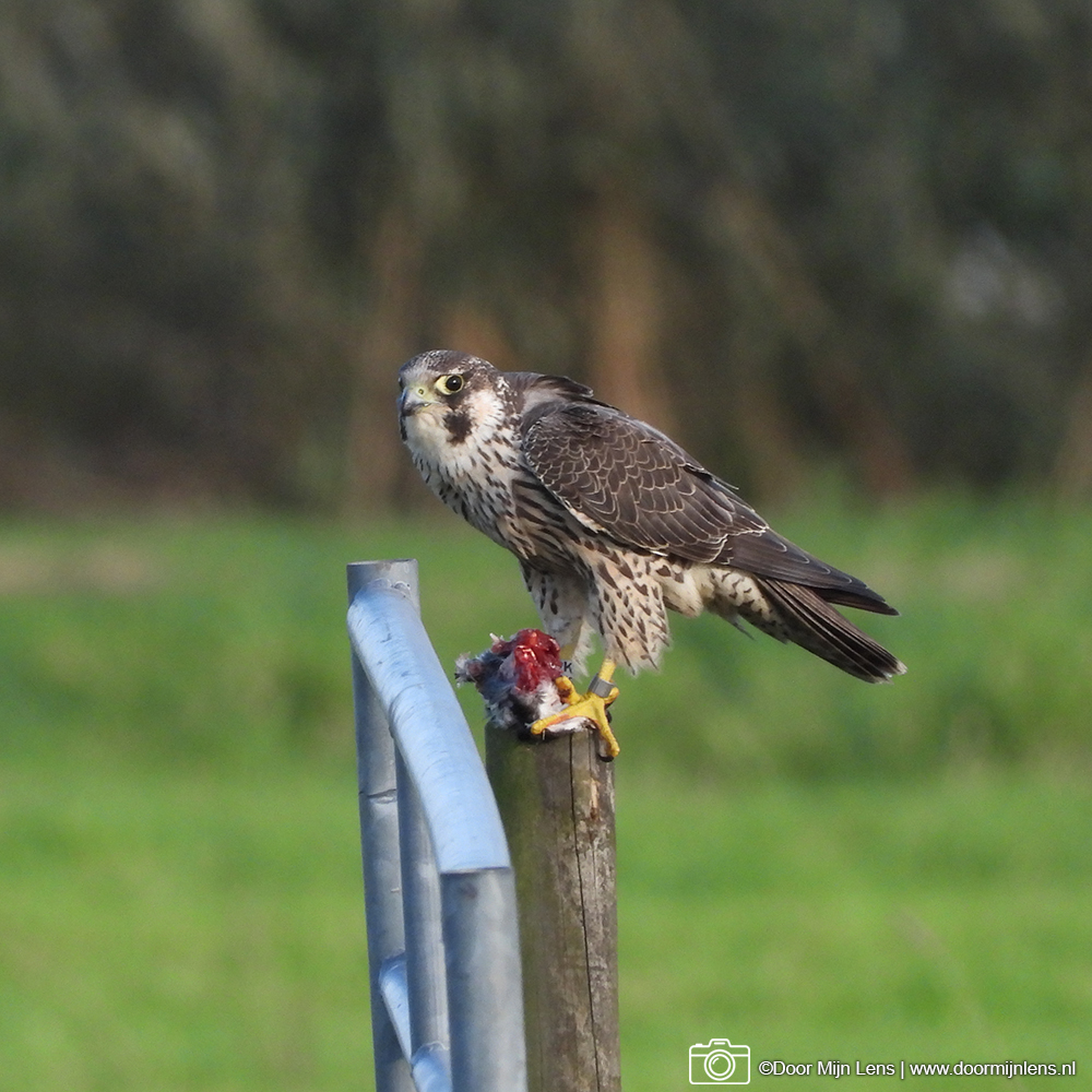 Toch is het gelukt: ik heb een prachtige slechtvalk met zijn prooi vast kunnen leggen! Wat een indrukwekkend gezicht, zo’n machtige roofvogel die rustig blijft zitten terwijl ik voorzichtig mijn foto’s maakte.